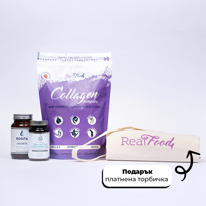 • RealFood Collagen Complex – мощен колагенов комплекс за подхранени стави, еластични сухожилия и здрава мускулна тъкан.